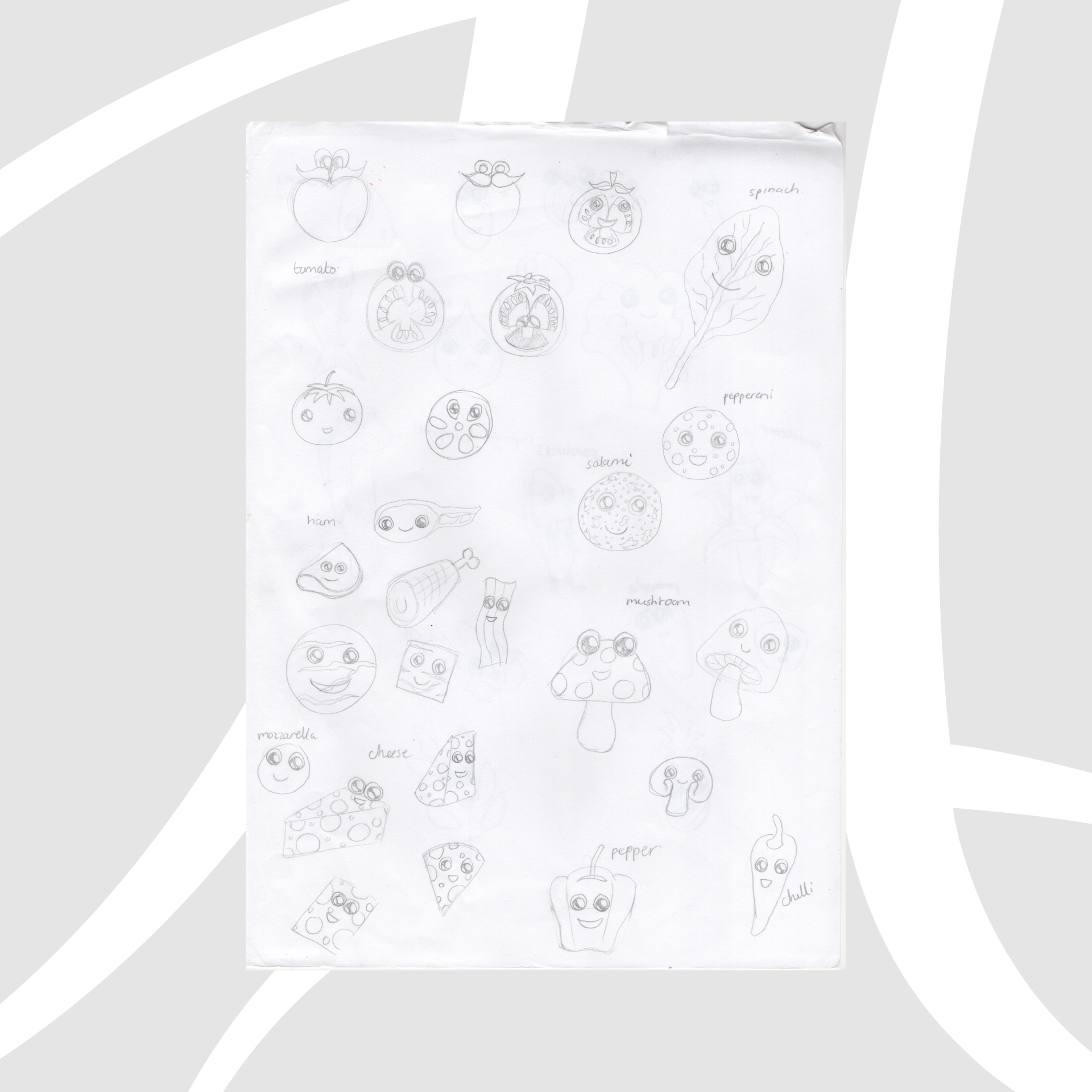 Once the flow of the app and game was in a good place I was able to focus on the characters. The idea was for users to match three pizza toppings in a row to earn points, and if they matched pizzas they got bonus points that had the potential to earn rewards such as a free meal.